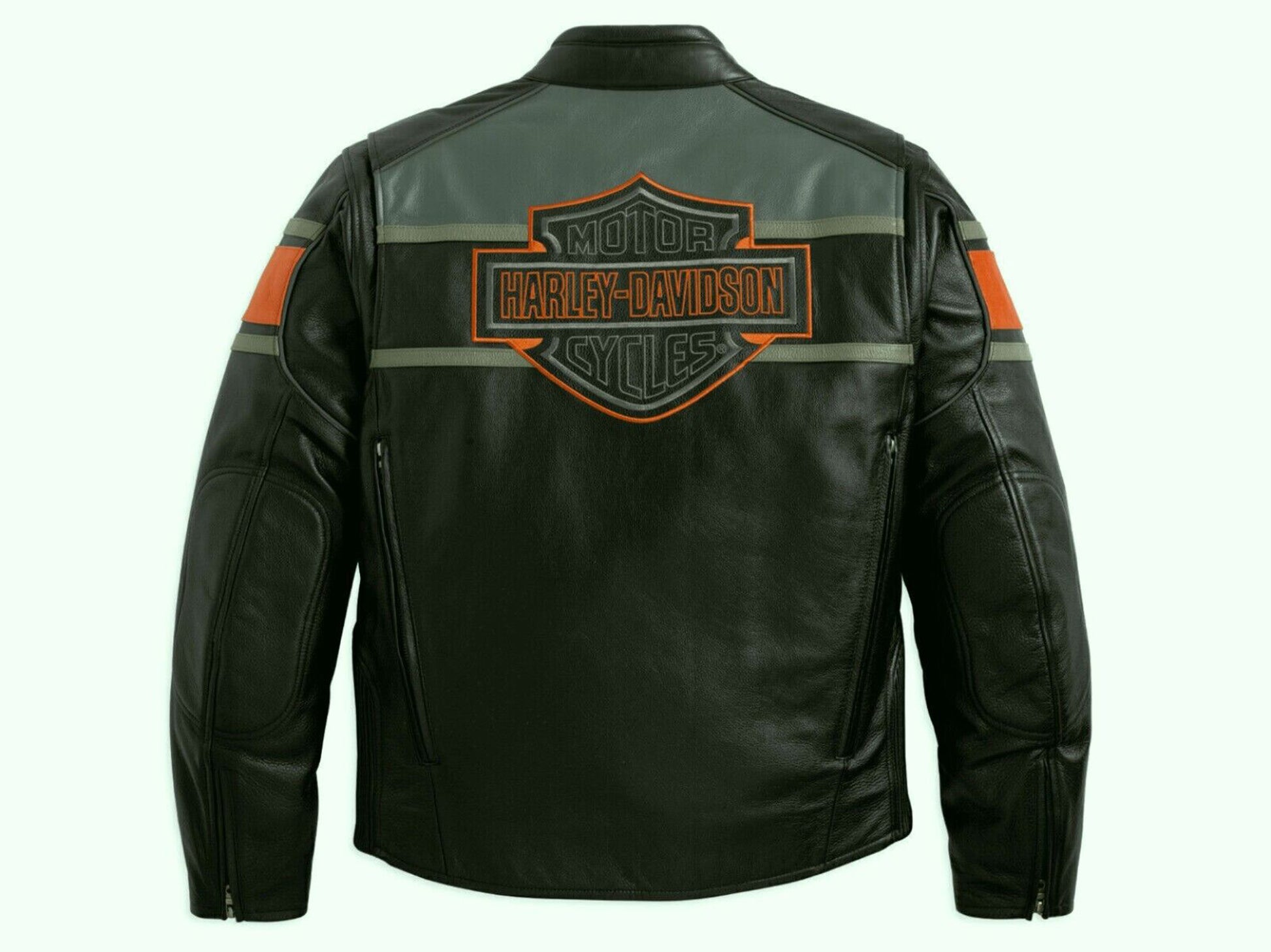 Harley Davidson Men’s Rumble Colorblocked Leather Jacket – Black & Orange Motorcycle Riding Ge